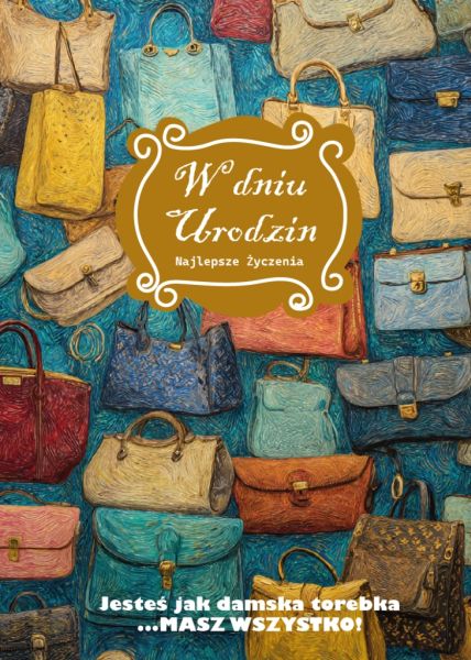 Stylowy karnet urodzinowy w formacie B6 z efektownym motywem damskich torebek to elegancka propozycja do... |