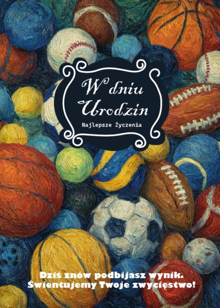 Efektowny karnet urodzinowy w formacie B6 z dynamicznym motywem różnych piłek sportowych to świetna propozycja do sklepów... |