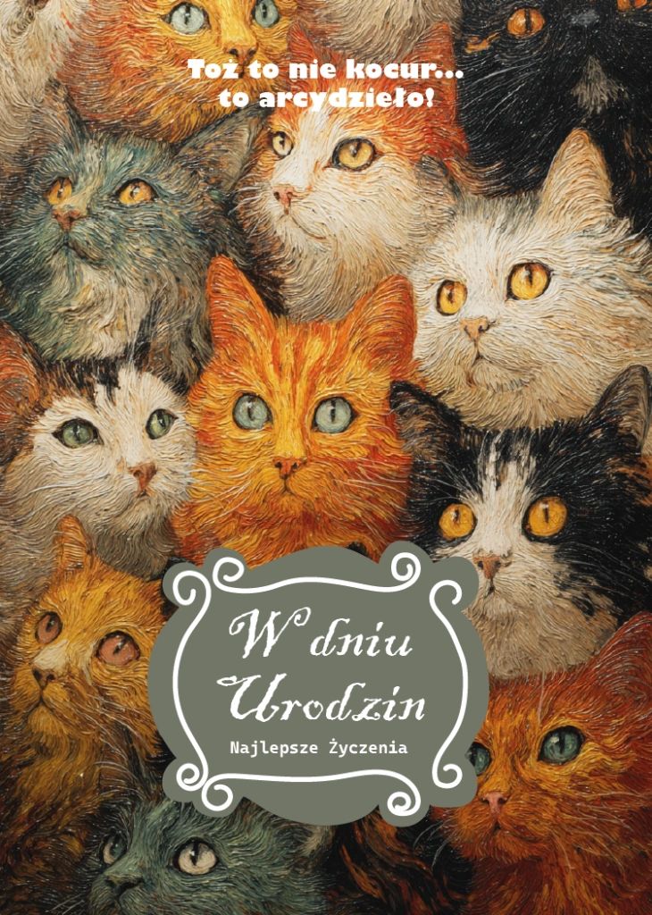 Kartka urodzinowa ARMIN STYLE GM-1354 Malarska, koty🐱 Karnet urodzinowy B6 „W dniu Urodzin” – urocza kartka z motywem kotów i kopertą