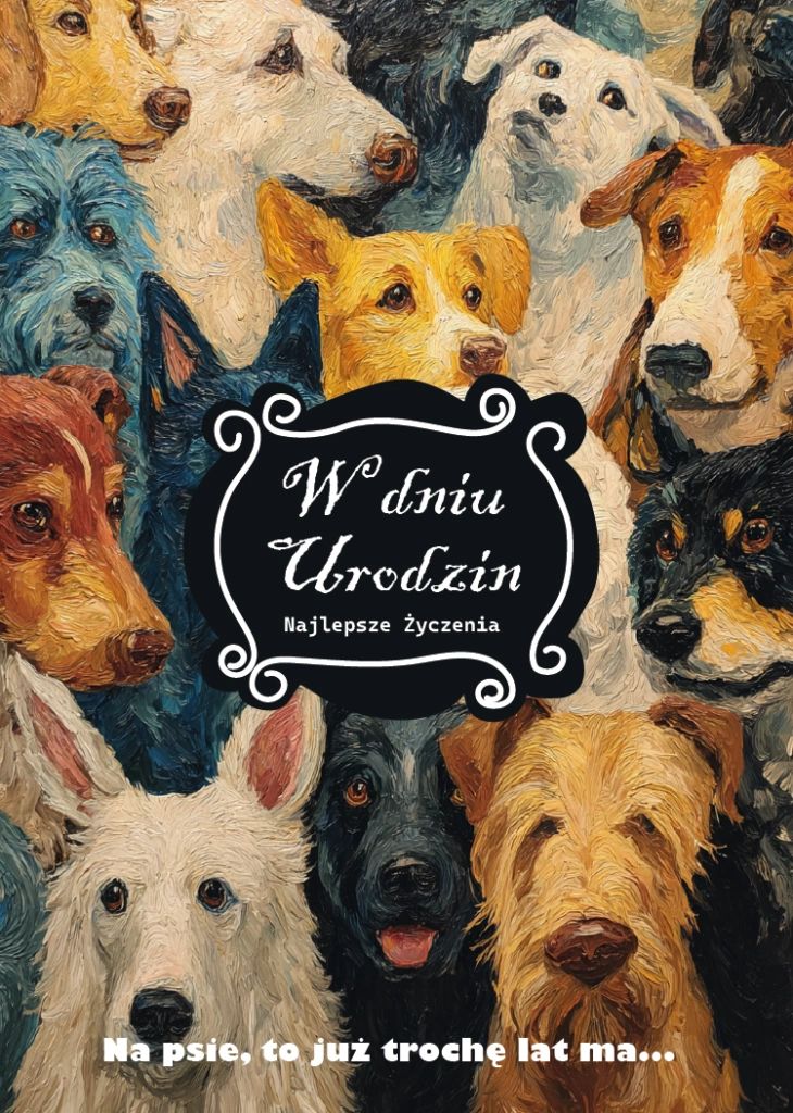 Kartka urodzinowa ARMIN STYLE GM-1355 Malarska, Psy🐶 Karnet urodzinowy B6 „W dniu Urodzin” – wyjątkowa kartka z motywem psów i kopertą