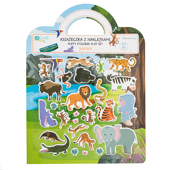 KSIĄŻECZKA Z NAKLEJKAMI WIELOKROTNEGO UŻYTKU- SAFARIKsiążeczka z naklejkami to produkt skierowany do dzieci, który pozwala rozwijać kreatywność poprzez budowanie własnych opowieści przy pomocy naklejek. W zestawie znajduje się książeczka z pięknym krajobrazem i gładkim wykończeniem a także 27 naklejek... |