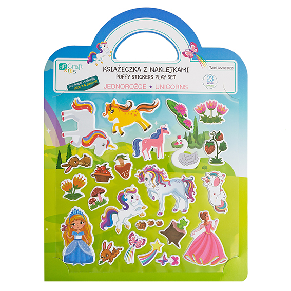 KSIĄŻECZKA Z NAKLEJKAMI WIELOKROTNEGO UŻYTKU- JEDNOROŻCEKsiążeczka z naklejkami to produkt skierowany do dzieci, który pozwala rozwijać kreatywność poprzez budowanie własnych opowieści przy pomocy naklejek. W zestawie znajduje się książeczka z pięknym krajobrazem i gładkim wykończeniem a także 23 naklejki... |