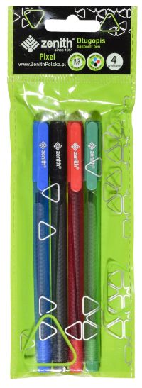 Długopis ZENITH Pixel 0, 5mm 4szt. mix kolorów•grubość końcówki 0,5 mm •kolor tuszu - niebieski, czarny •wyjątkowa lekkość pisania |