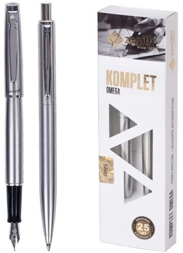 Zestaw ZENITH 60 CLASSIC SILVER - Pióro wieczne + Długopis automatyczny w etui [opakowanie=6szt]Eleganckie metalowe pióro wieczne i metalowy długopis Silver. Stalówka zakończona irydową kulką dla zapewnienia doskonałej jakości i łatwości pisania. Wymienne naboje atramentowe. Wymienny wkład wielkopojemny Zenith 4 z dokumentalnym tuszem w kolorze... |