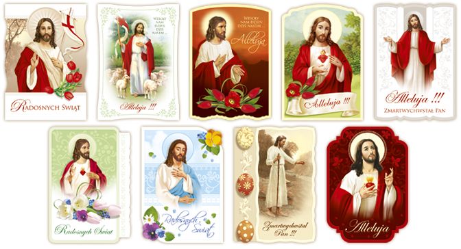 Pocztówka Religijna Brokat Wielkanoc a50Pocztówki świąteczne Brokat, ozdobny wykrojnik 9 wzorów w opakowaniu 50 szt. mix |