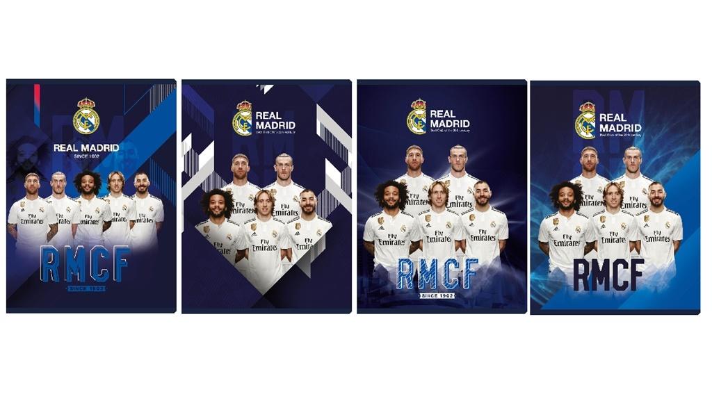 Zeszyt A5 16k. ASTRAPAP Real Madrid, kolorowa trzyliniaKolorowy wewnętrzny zadruk okładki, zaokrąglone rogi, gramatura: 60g/m2 |
