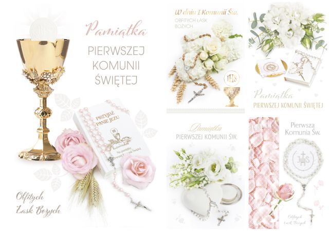 Uczcij wyjątkowy dzień Pierwszej Komunii Świętej elegancką laurką, która stanie się piękną pamiątką na lata. Delikatne wzory, komunijne symbole i subtelne... |