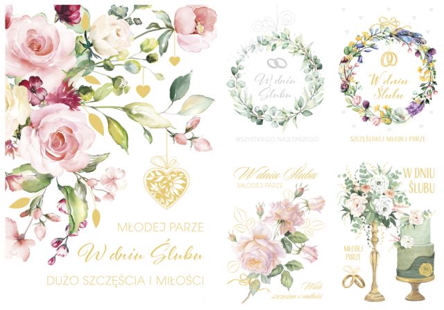 Laurka ślubna POL-MAK w dużym formacie to elegancka propozycja na wyjątkową okazję, jaką jest ślub. Romantyczne wzory z Parą Młodą, pastelową... |