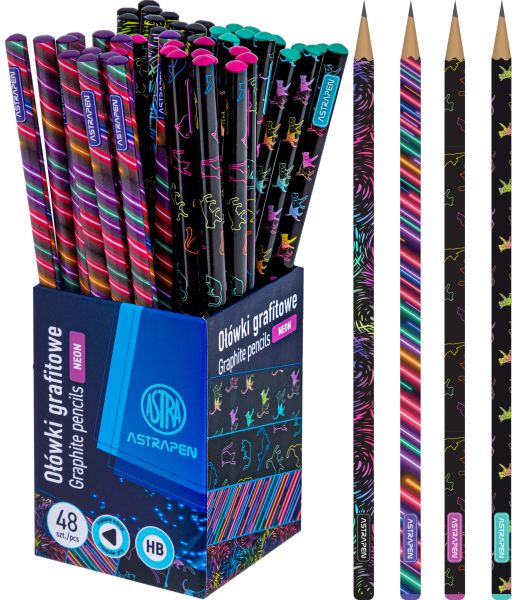 Ołówki grafitowe trójkątne HB ASTRAPEN - Neon/Cats - 4 szt. blister– twardość HB – wytrzymały grafit – łatwy w temperowaniu – trójkątny przekrój – atrakcyjny zadruk