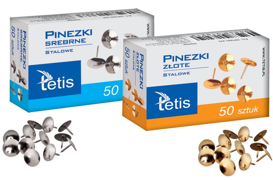 Pinezki TETIS srebrne 50szt.Wykonane ze stali nierdzewnej.