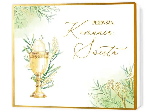 Złocone pudełko prezentowe na Pierwszą Komunię Świętą to elegancki i uniwersalny sposób na wręczenie prezentu w wyjątkowej oprawie. Produkt wyróżnia się subtelną, jasną kolorystyką z delikatnymi motywami roślinnymi w odcieniach zieleni oraz... |
