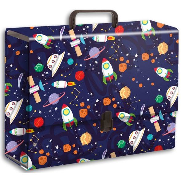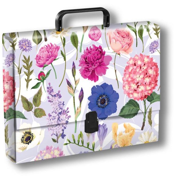 Rączka i zamek wykonane z plastiku. Produkt idealny na bloki, prace plastyczne oraz wszelkie notatki. Do wyboru 4 kolorowych wzorów. |