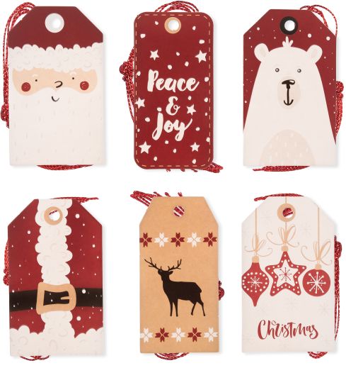 ZAWIESZKI DO PREZENTÓW ZE SZNURKIEM, SANTA, 24 SZT.Zawieszki do prezentów ze sznurkiem, Santa to świetny dodatek do prezentów świątecznych. Można przywiązać je do torby prezentowej, podarunku zawiniętego w ozdobną folię lub papier oraz butelki. Zestaw tagów do prezentów zawiera 6 wzorów z Mikołajem... |