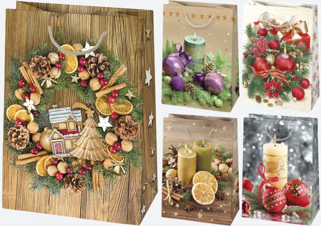 Torebki prezentowe POL-MAK z kolekcji Gwiazdka T8_GW_37 to wyjątkowa propozycja dla miłośników eleganckich i nastrojowych wzorów. Zdobione świątecznymi dekoracjami – świecami, bombkami, szyszkami... |