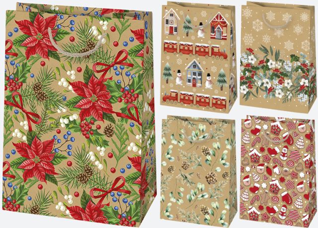 Eleganckie torebki prezentowe POL-MAK z kolekcji Gwiazdka T5_GW_84 to połączenie tradycyjnych motywów świątecznych z nowoczesnym designem. Ciepłe barwy, motywy kokard, gałązek świerkowych, poinsecji, cukrowych... |
