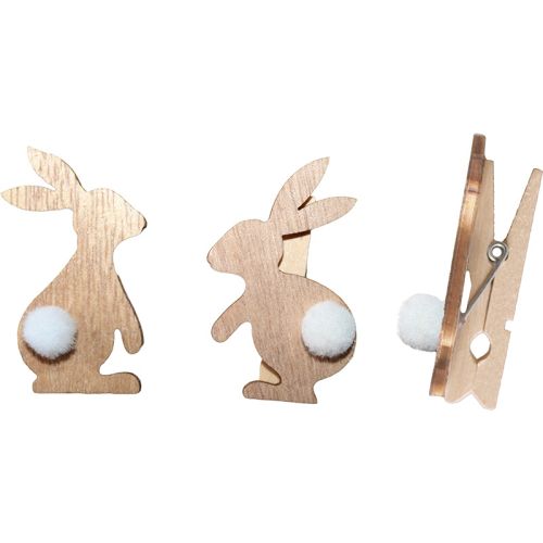 Titanum » Artykuły dekoracyjne całoroczne » Drewniane Dekoracje, Patyczki, Spinacze » Klamerki drewniane z dekorem naturalne 7x45mm króliczki bokiem drewniane 33x55mm z pomponem białym 2 wzory 6szt. TITWLK