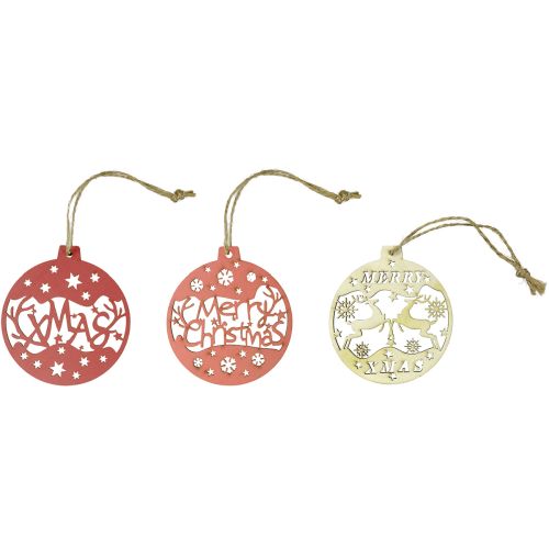 Titanum » Artykuły dekoracyjne całoroczne » Drewniane Dekoracje, Patyczki, Spinacze » Drewniane zawieszki Bombki kolor z jutowym sznurkiem 3 wzory x 2szt.