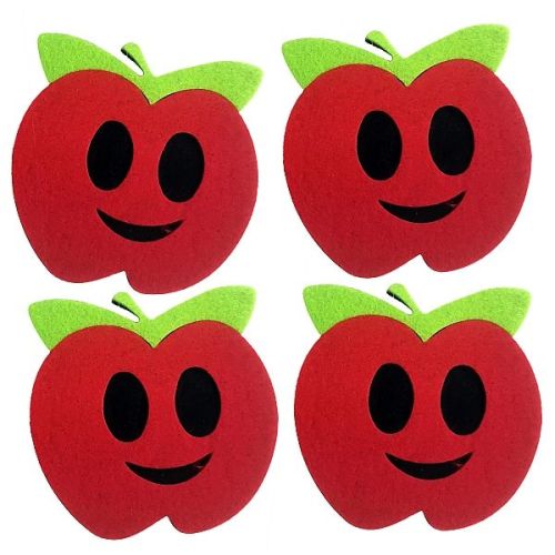Titanum » Artykuły dekoracyjne całoroczne » Filce i Pianki: naklejki i dekoracje » Filcowe jabłka 3D 80x65mm uśmiechnięte czerwono-zielone 4szt.