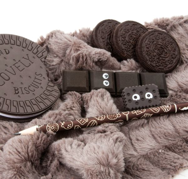 Pamiętnik o smakowitym waniliowym zapachu z dwoma równie słodkimi gumkami do mazania: ciasteczkiem i czekoladą oraz ołowkiem o twardości rysika HB. Pamiętnik w kształcie ciastka pomieści w swoim wnętrzu wiele sekretów i marzeń. Smakowite gumki wymażą każdy błąd ołówka. Zapachowy pamiętnik z akcesoriami sprawdzi się również jako szkicownik lub wyjątkowy prezent na każdą okazję.