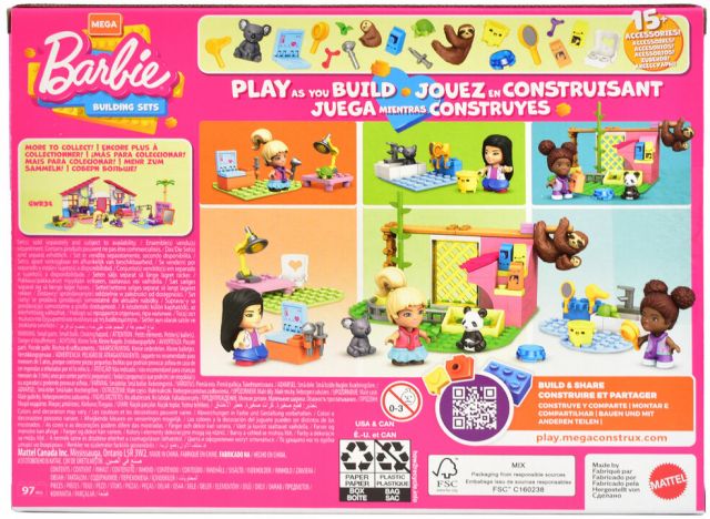 Odkryj uroczy Barbie Salon dla Zwierzątek od firmy Mattel, stworzony z kolorowych klocków MEGA BLOKS