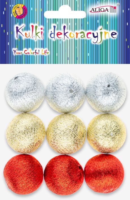 Kuleczki dekoracyjne styr. BOM-4374 pokryte metalizowanymi nićmi, rozm. 3cm, op. 9szt.