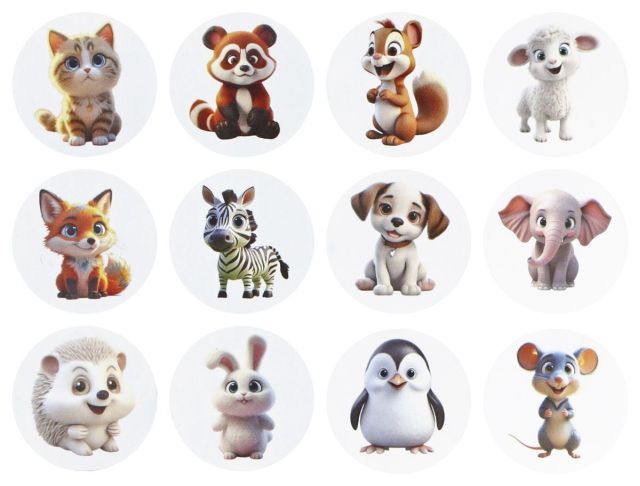 Naklejki papierowe na taśmie 12 wzorów O25mm słodkie zwierzątka 500szt. szerokość taśmy 28mmNaklejki papierowe na taśmie 12 wzorów O25mm słodkie zwierzątka 500szt. szerokość taśmy 28mm