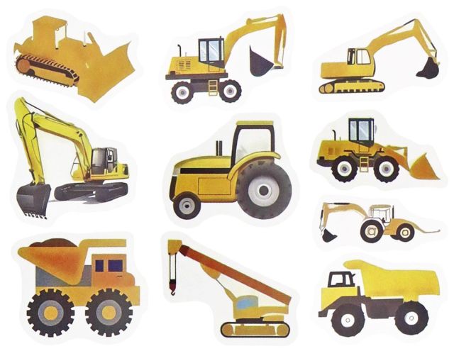 Titanum » Artykuły dekoracyjne całoroczne » Naklejki Dekoracyjne » Naklejki papierowe na taśmie 8 wzorów maszyny budowlane mix rozmiarów żółto-czarne 500szt. szerokość taśmy 28mm