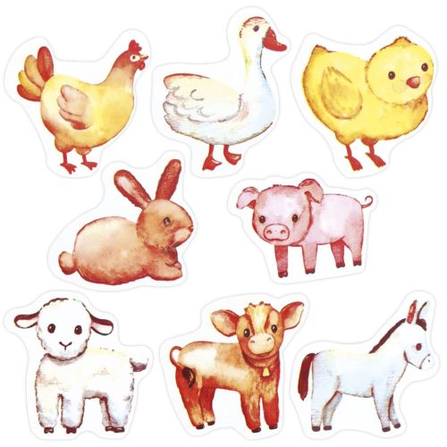 Titanum » Artykuły dekoracyjne całoroczne » Naklejki Dekoracyjne » Naklejki papierowe na taśmie 8 wzorów mix rozmiarów zwierzęta gospodarskie 500szt. szerokość taśmy 28mm