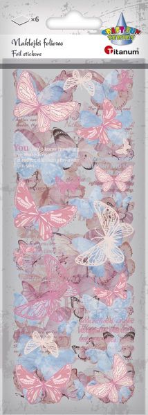 Titanum » Artykuły dekoracyjne całoroczne » Naklejki Dekoracyjne » Naklejki foliowe 6 plansz motyle czerwone, różowe, błękitne