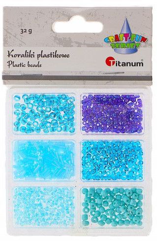 Titanum » Artykuły dekoracyjne całoroczne » Koraliki, Guziki » Koraliki plastikowe mix 6 rozmiarów 32g tonacja niebieska