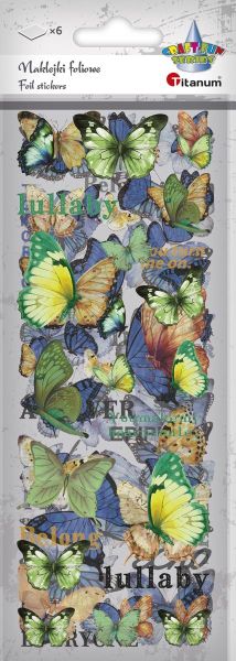 Titanum » Artykuły dekoracyjne całoroczne » Naklejki Dekoracyjne » Naklejki foliowe 6 plansz motyle niebieskie, pomarańczowe, zielone