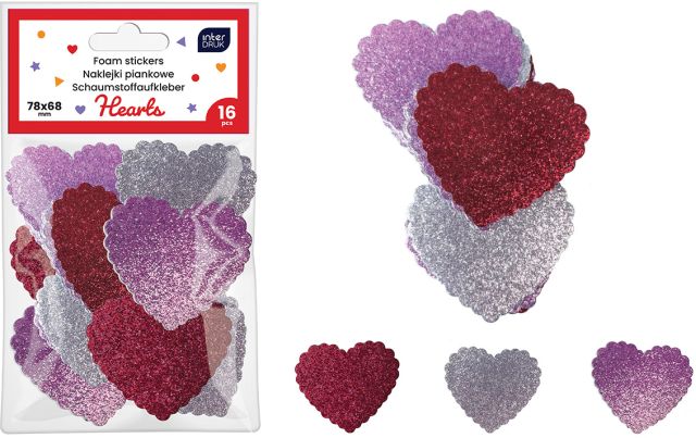 Interdruk » Nowości Interdruk » Brokatowe nakl.piank.samop.16szt HEARTS