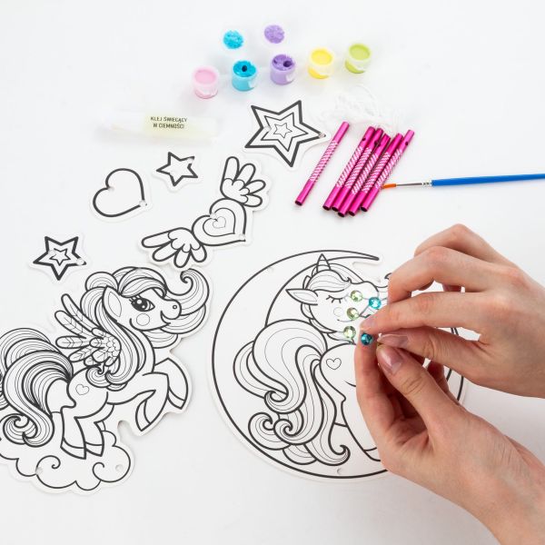 Nr: BA480DF Kod kreskowy: 5906601708527 Nr kat. MDWSCKA Magiczne dzwonki wietrzne świecące w ciemności. Zaprojektuj swoje własne dzwonki z tekturowym szablonem jednorożców na księżycu otoczonymi bajkowymi elementami, które pięknie ozdobią pokój. Zestaw zawiera wszystko co jest potrzebne do stworzenia niesamowitej dekoracji. Kompletny zestaw kreatywny zawiera 6 dzwonków, 12 ozdobnych diamencików, 7 tekturowych szablonów do malowania, 5 kolorów farb z pędzelkiem, żel świecący w ciemności oraz sznurek do montażu. Dzięki specjalnemu klejowi świecącemu gotowa dekoracja będzie magicznie lśnić po zmroku, tworząc nastrojową atmosferę w pomieszczeniu. Zestaw gwarantuje godziny twórczej zabawy, a efekt końcowy to wyjątkowa dekoracja wnętrza. Wymiary: 18 x 26 cm Koszty dostawy są obliczane wg CENNIKAW opakowaniu: 1 szt Minimalna zamawiana ilość: 1 szt Dlaczego nie widać cen? Ceny produktów oraz możliwość kupowania są dostępne tylko dla osoby zalogowanej. Jeżeli nie masz jeszcze konta - zarejestruj się. Uwaga! Prowadzimy sprzedaż tylko dla odbiorców hurtowych.