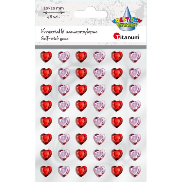 Titanum » Artykuły dekoracyjne całoroczne » Kryształki, Perełki » Kryształki samoprzylepne serca 10x10mm czerwone, bladoróżowe 48szt.