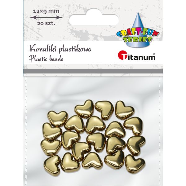 Titanum » Artykuły dekoracyjne całoroczne » Koraliki, Guziki » Koraliki plastikowe lustrzane serca płaskie 12x9mm dziurka O3, 5mm złote 20szt.