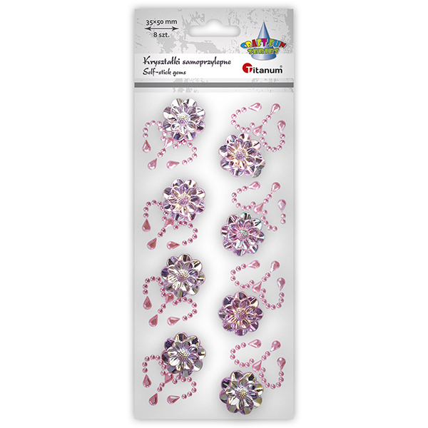 Titanum » Artykuły dekoracyjne całoroczne » Kryształki, Perełki » Kryształki samoprzylepne kwiaty 35x50mm różowe 8szt.