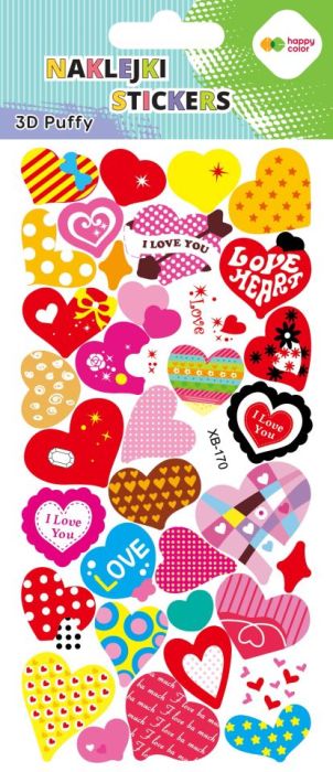 Gdd » Happy Color » Tatuaże, Naklejki, Breloki » Naklejki 3D PUFFY-Love Hearts, 9.5 cm x 22 cm, Happy Color [opakowanie=5szt]