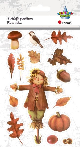 Titanum » Artykuły dekoracyjne całoroczne » Naklejki Dekoracyjne » Naklejki foliowe strach na wróble, ptaszek, grzybek, dynia, liście mix 14szt.