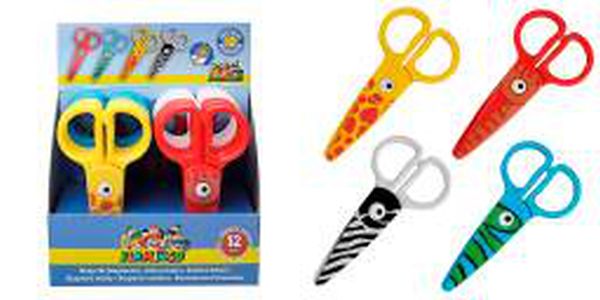 Nożyczki bezpieczne 12cm 4 zwierzęce wzory plastikowe, zaokrąglone ostrze, tną tylko papier, dla dzieci od 2 roku życia [opakowanie=12szt]