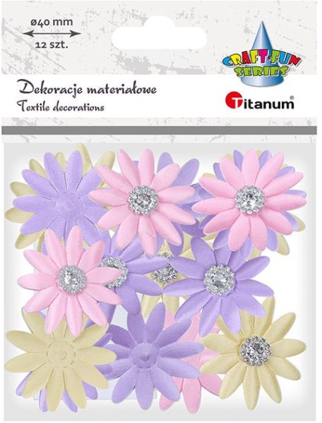 Titanum » Nowo¶ci Titanum » Dekoracje materia³owe kwiaty z kryszta³kiem O40mm wrzosowe, ró¿owe, ¿ó³te 12szt. TITWLK26