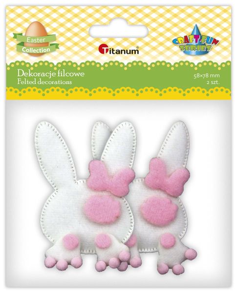 Titanum » Nowości Titanum » Dekoracje filcowe 3D zajączki z kokardką 60x90mm biało-różowe 2szt. TITWLK26