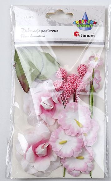 Titanum » Nowości Titanum » Dekoracje papierowe kwiaty różowe, liście 12 elementów TITWLK26