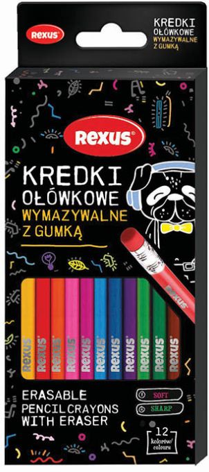 KREDKI OŁÓWKOWE Z GUMKĄ WYMAZYWALNE 12kol. / REXUS TEENS