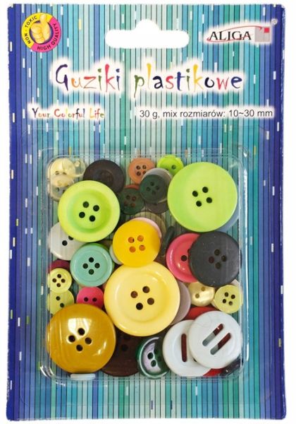 Aliga » Nowości » Guziki plastikowe, mix rozmiarów i kolorów