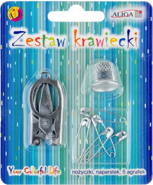 Aliga » Nowości » Zestaw krawiecki - nożyczki, naparstek, 5 agrafek