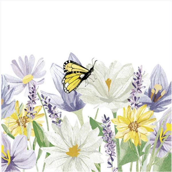 Pol-Mak » Nowosci » Serwetki POL-MAK Daisy coctail 25cm 20szt. Pastel Garden Flowers with Butterflies CD_WI_008301 [opakowanie=12szt]