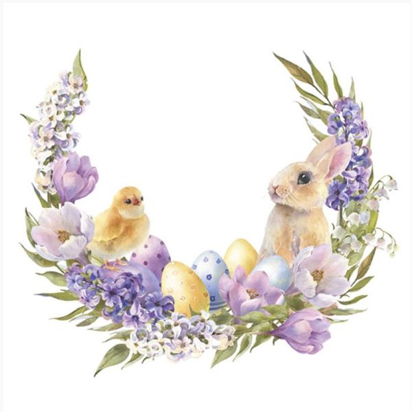 Pol-Mak » Serwetki » Serwetki Wielkanoc » Serwetki POL-MAK Daisy Lunch 33cm 20szt. Bunny x Chick in Flowers Wreath SD_WL_013601 [opakowanie=24szt]