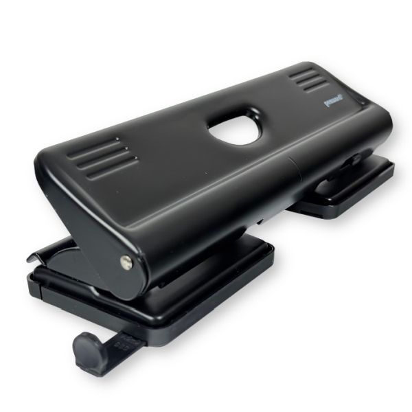 metalowy dziurkacz do 25 kartek posiada antypoślizgowy uchwyt na dźwigni i otwierany pojemnik na ścinki wyposażony jest również w blokadę dźwigni i wskaźnik środka strony posiada listwę formatową obsługuje formaty: A4-S, A3-E, B5-S, B5-E, A5-S, A5-E, B6-S, B6-E, A6-S, 888