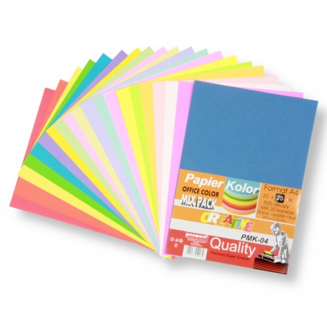 PAPIER OFFICE COLOR A4/500 STANDARD + PASTEL+FLUO 20 KOLORÓW PMK-04