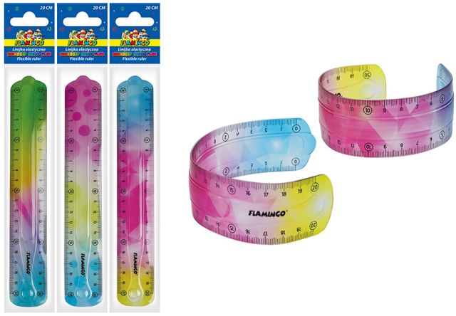 Linijka elastyczna 20cm z uchwytem tęczowa mix 3 kolorów